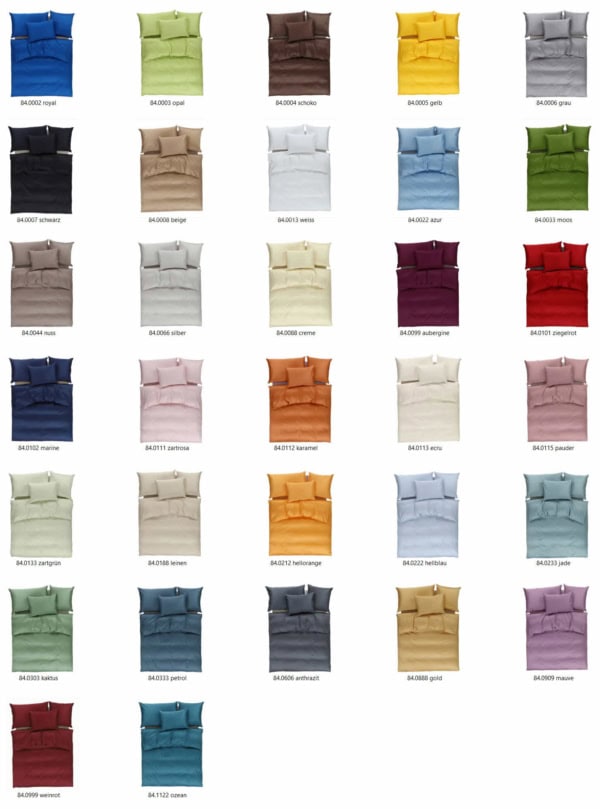 Schweizer Satin Bettwäsche, einfarbig (35 Farben zur Auswahl)