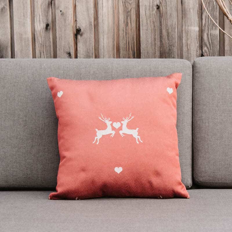 Schweizer Bettwaren Grosses Arvenkissen "Hirsch rot"